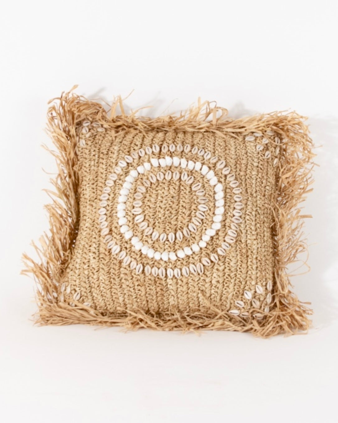ALMOHADON PADAN RAFIA Y CARACOLES 40 x 40