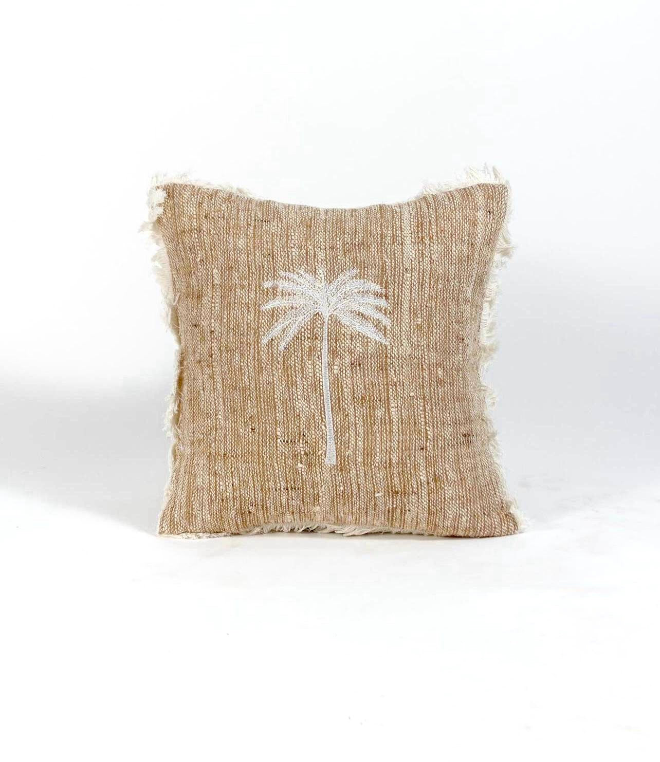 ALMOHADON PALMERAS LINO LAWAN - POMPONES / FLECOS