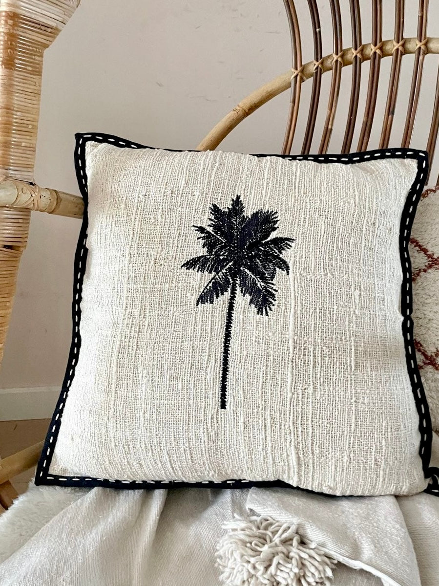 ALMOHADON PALMERA BORDADO Y MARCO NEGRO