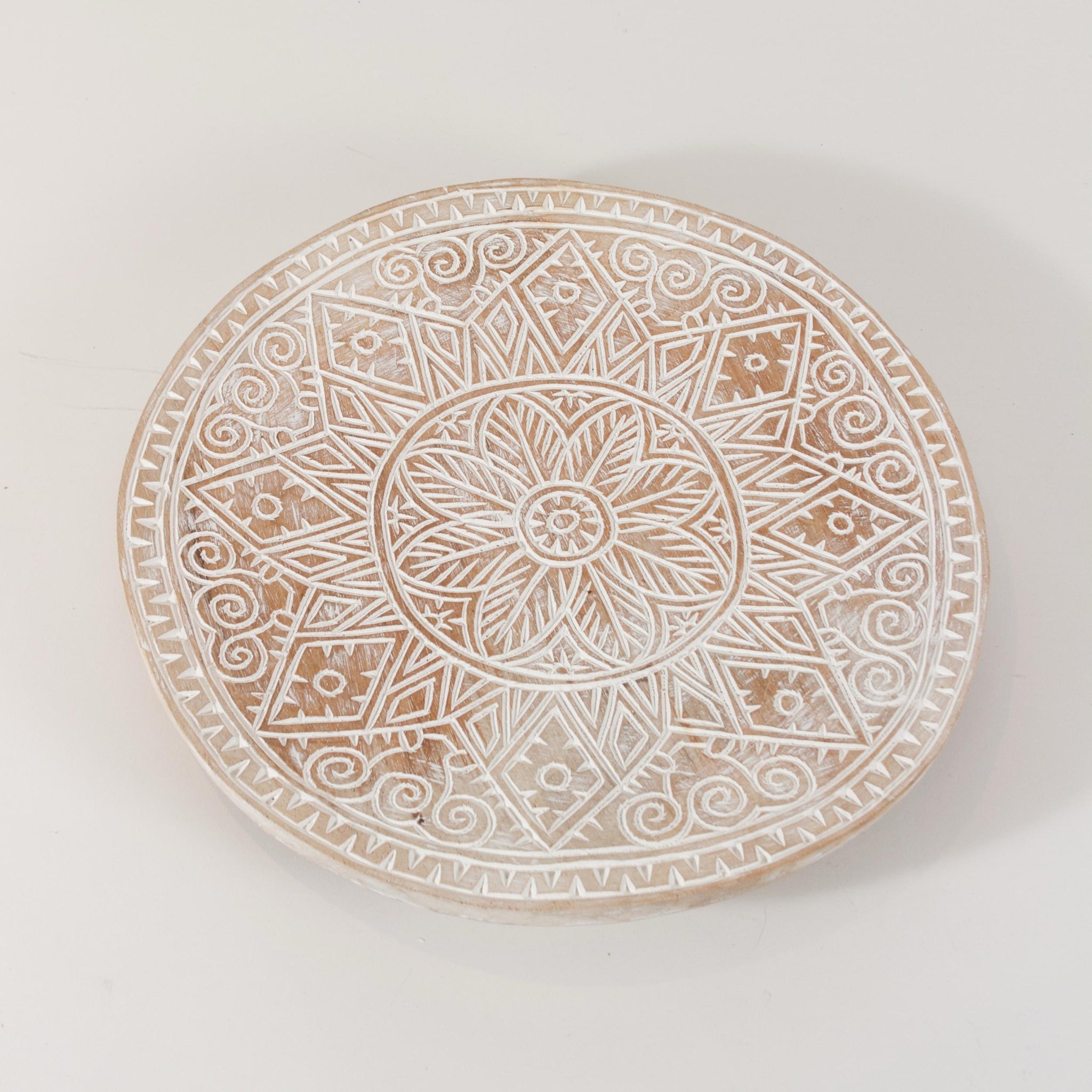 PLATO MANDALA DE MADERA TALLADA WHITEWASH