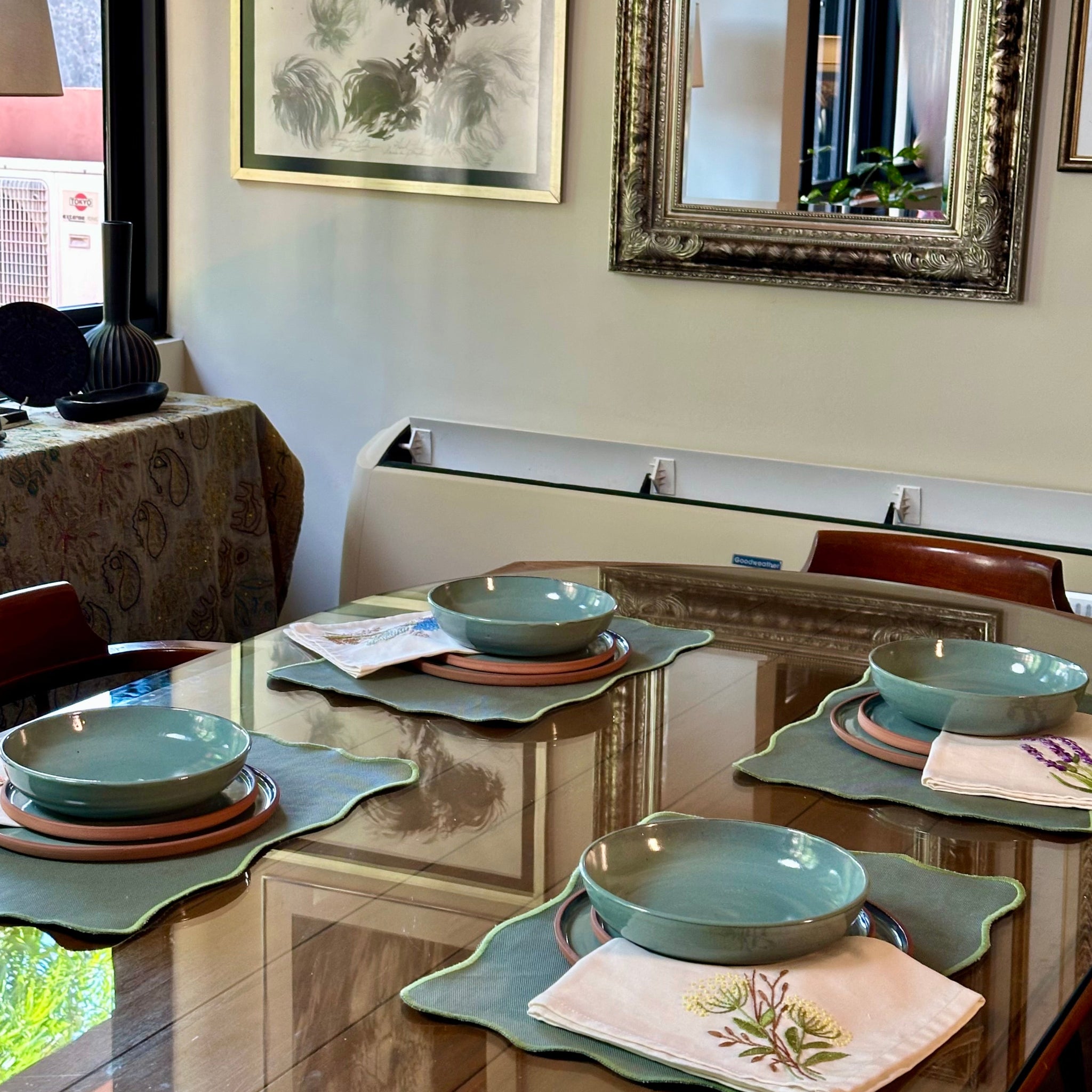 INDIVIDUALES DE ALGODÓN BORDADOS A MANO - MOSTAZA (SET DE 4)