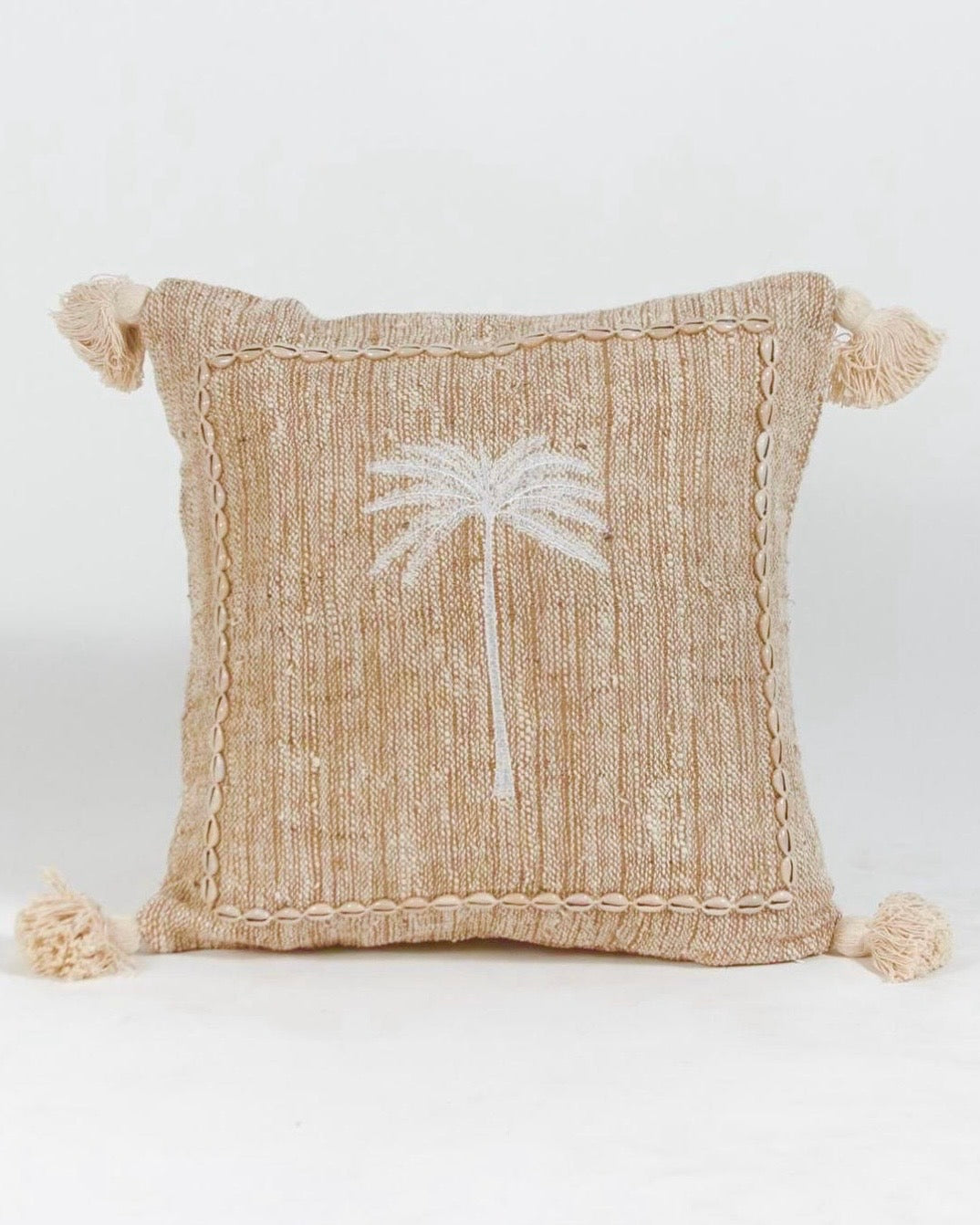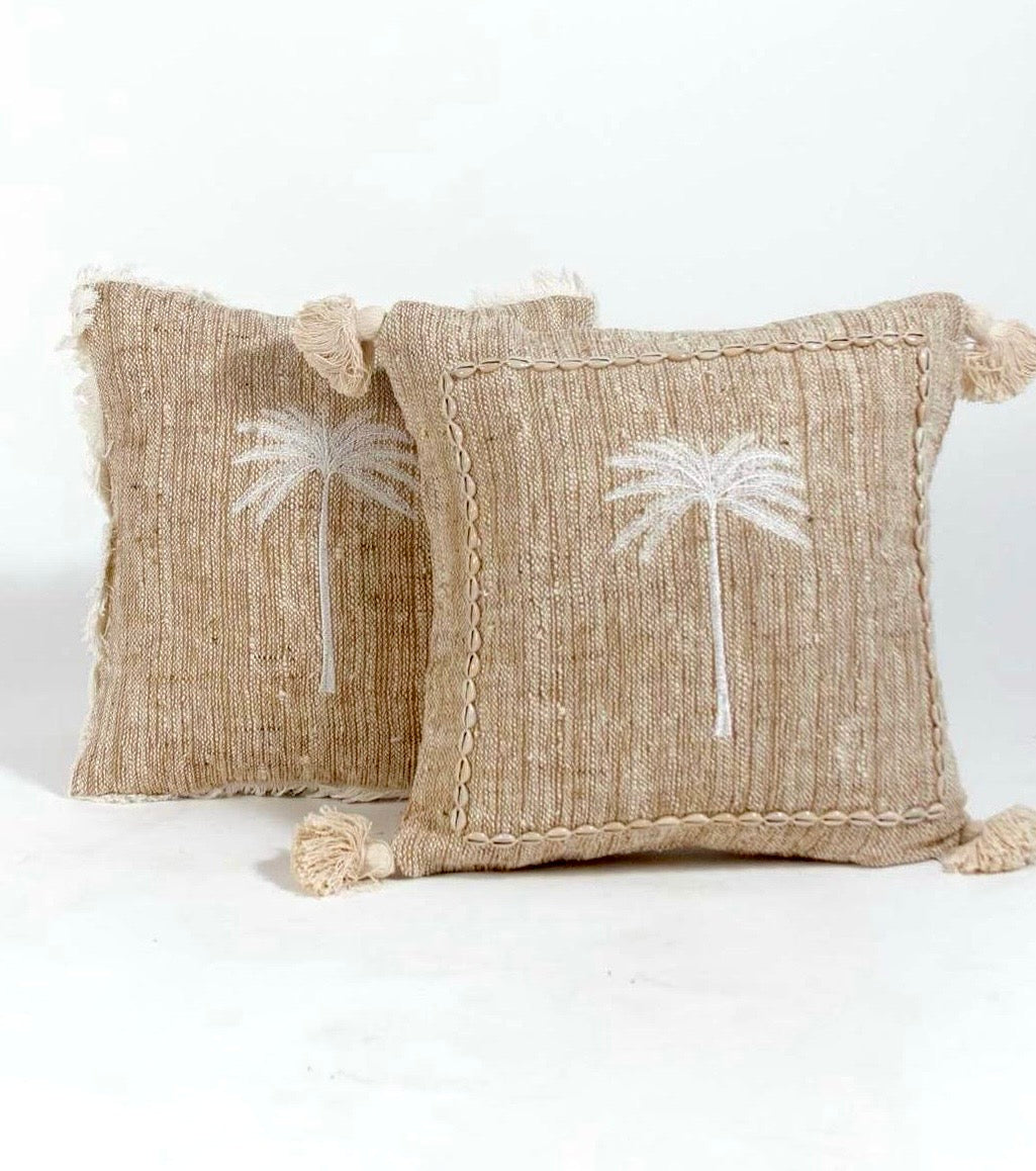 ALMOHADON PALMERAS LINO LAWAN - POMPONES / FLECOS