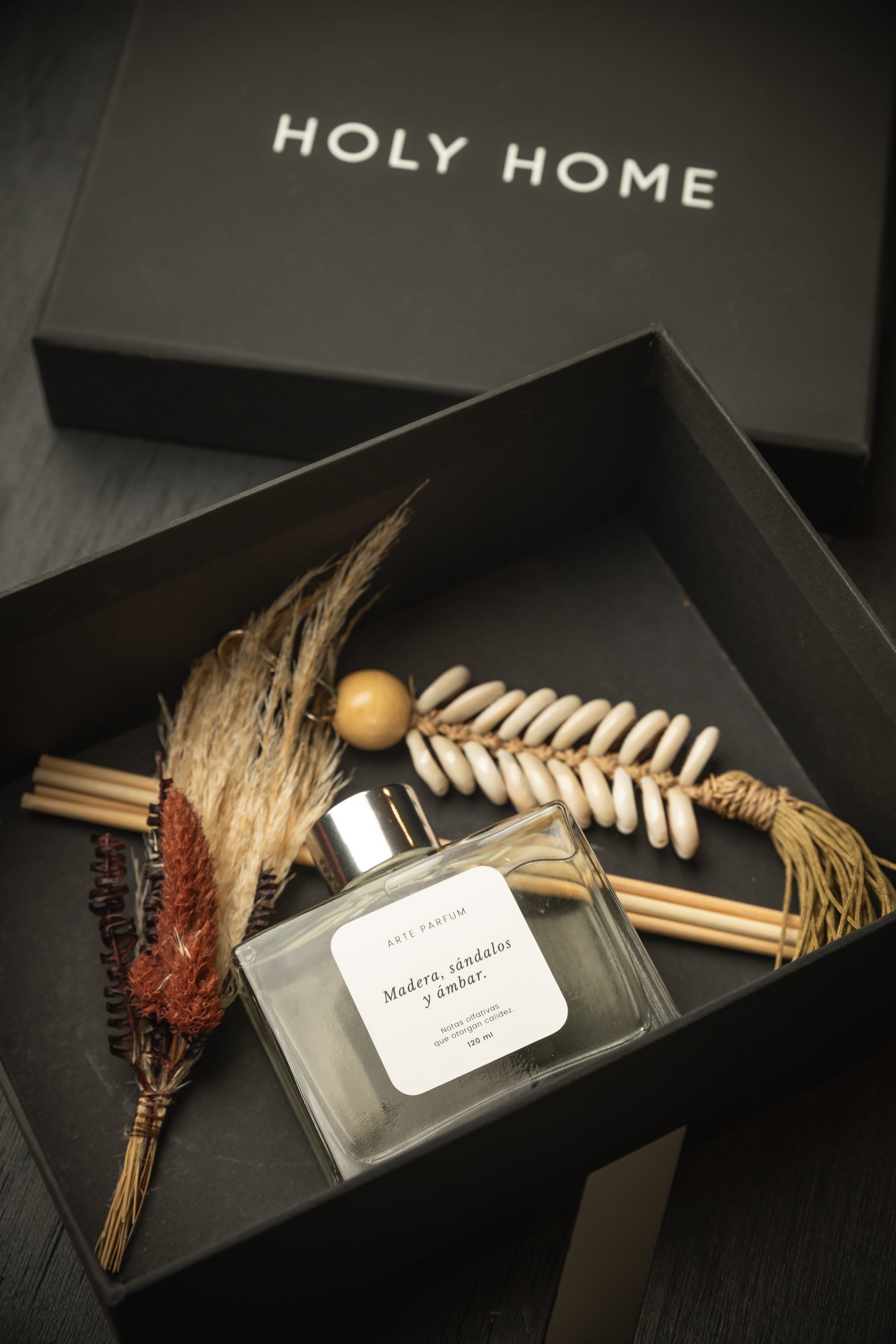 Un hermoso y práctico detalle ideal para regalar: Difusor Arte Parfum con detalle floral decorativo y llavero de caracoles naturales artesanal.