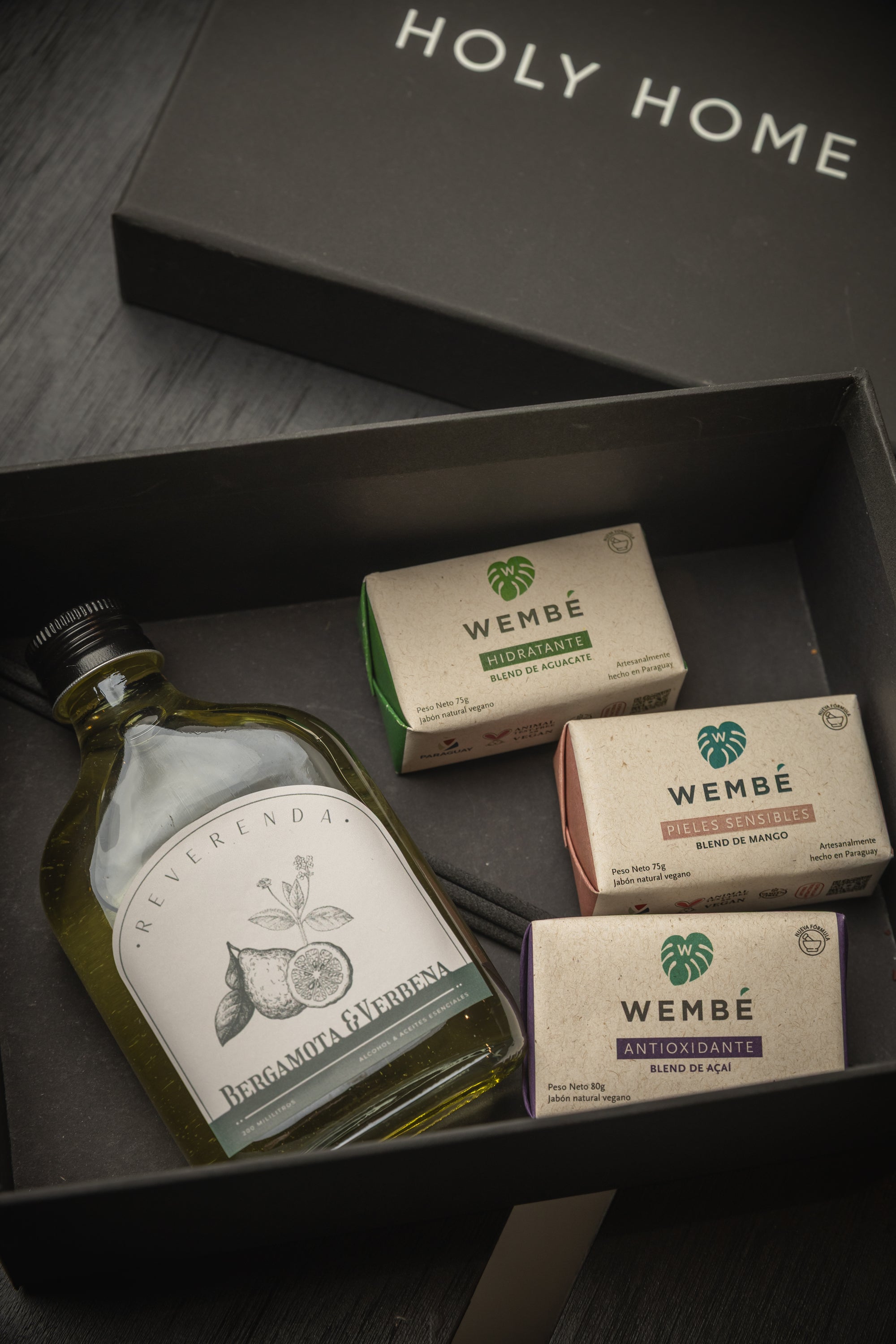 Un hermoso y práctico detalle ideal para regalar: Difusor Reverenda Essentials y tres jabones artesanales Wembé.
