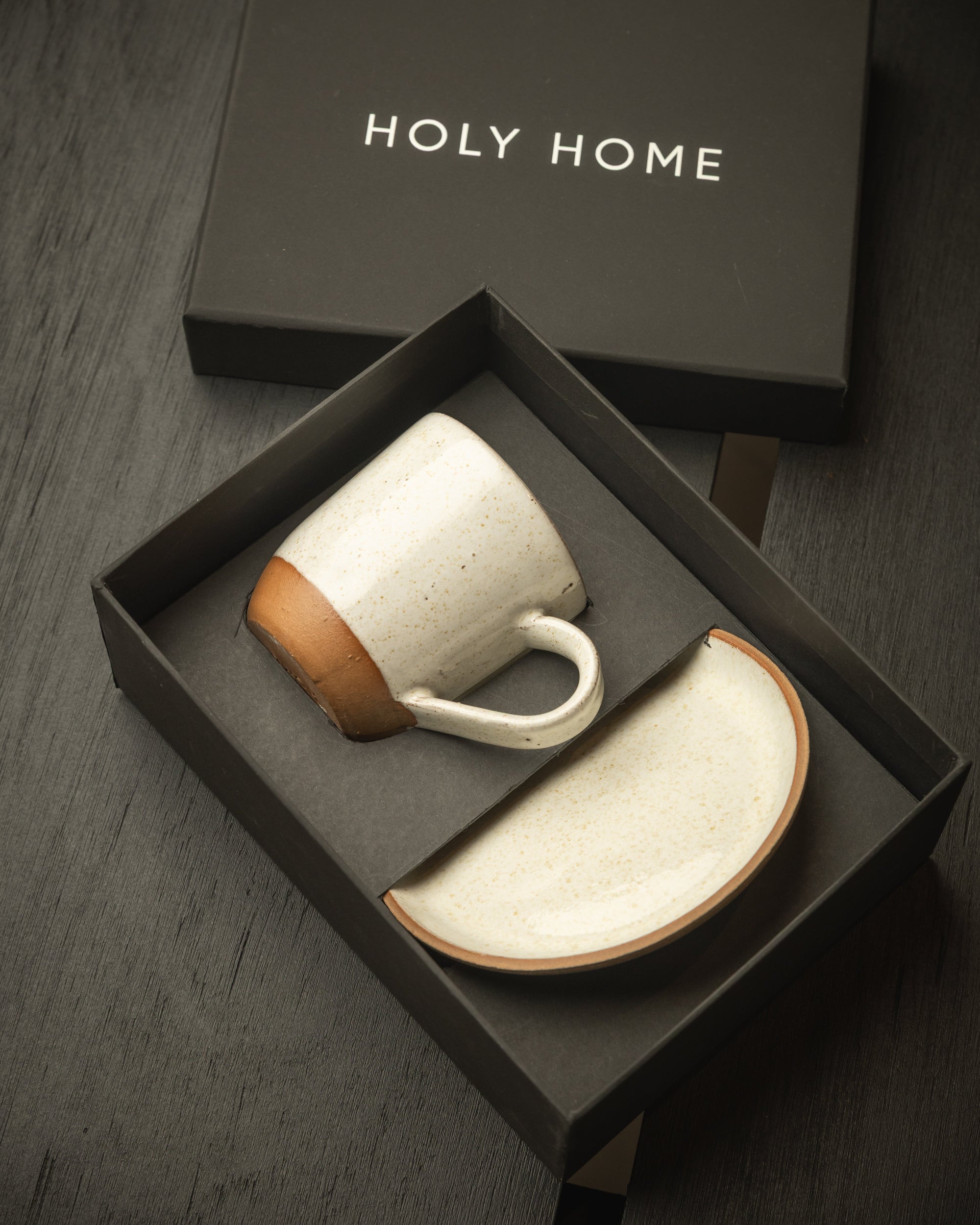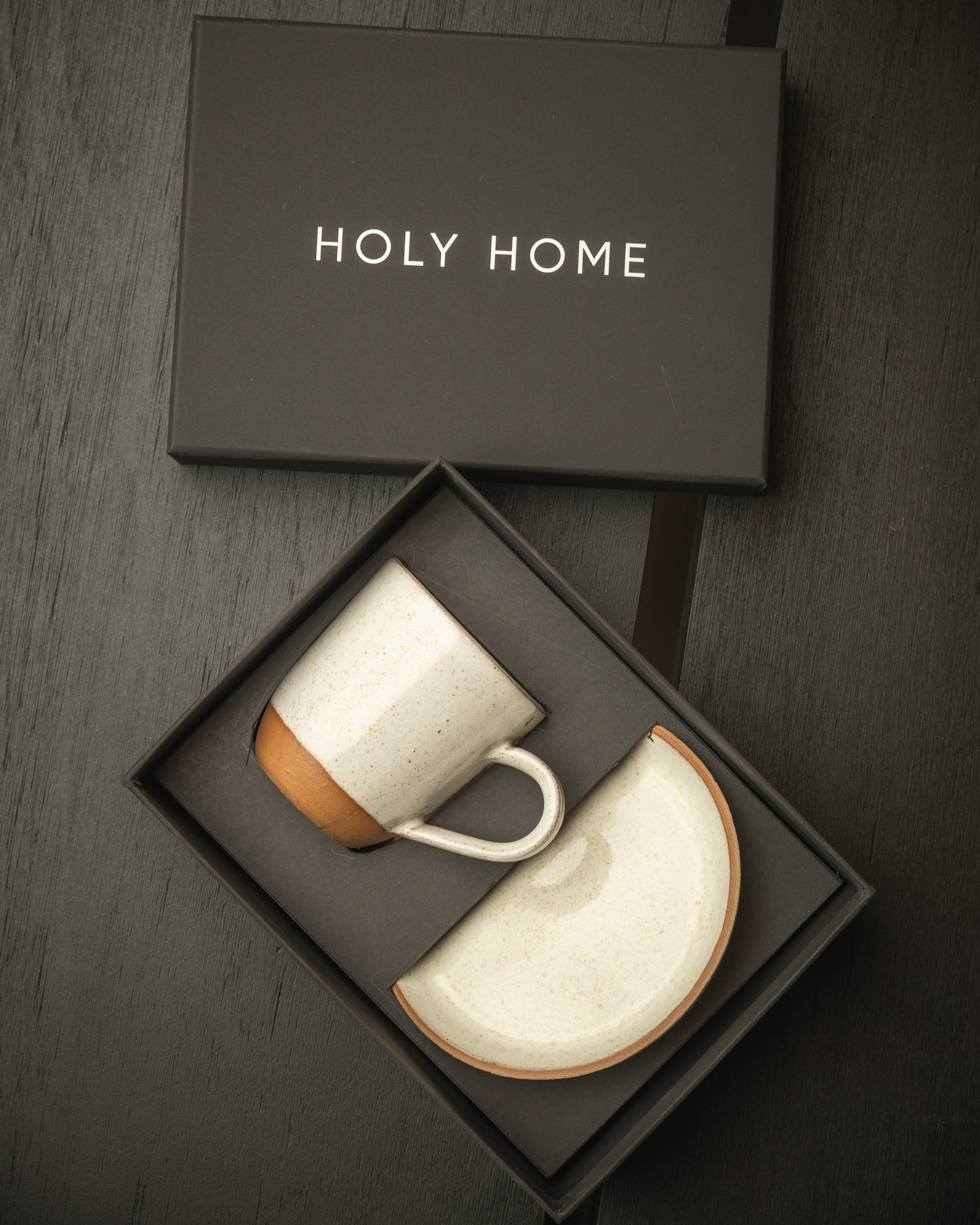 Nuestra taza de café de cerámica artesanal se presenta en la caja premium HOLY HOME, diseñada especialmente para regalar momentos y experiencias únicas. Cada pieza, hecha a mano con dedicación y materiales nobles, se convierte en un objeto que transmite calidez y autenticidad.