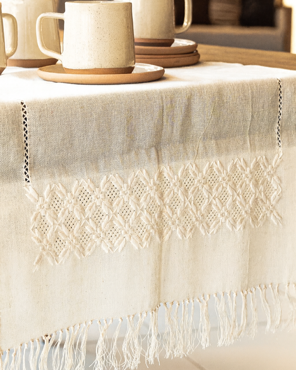 About the product: Cotton canvas walker with embroidery of ao po'i points and vanillas at the ends, handmade.