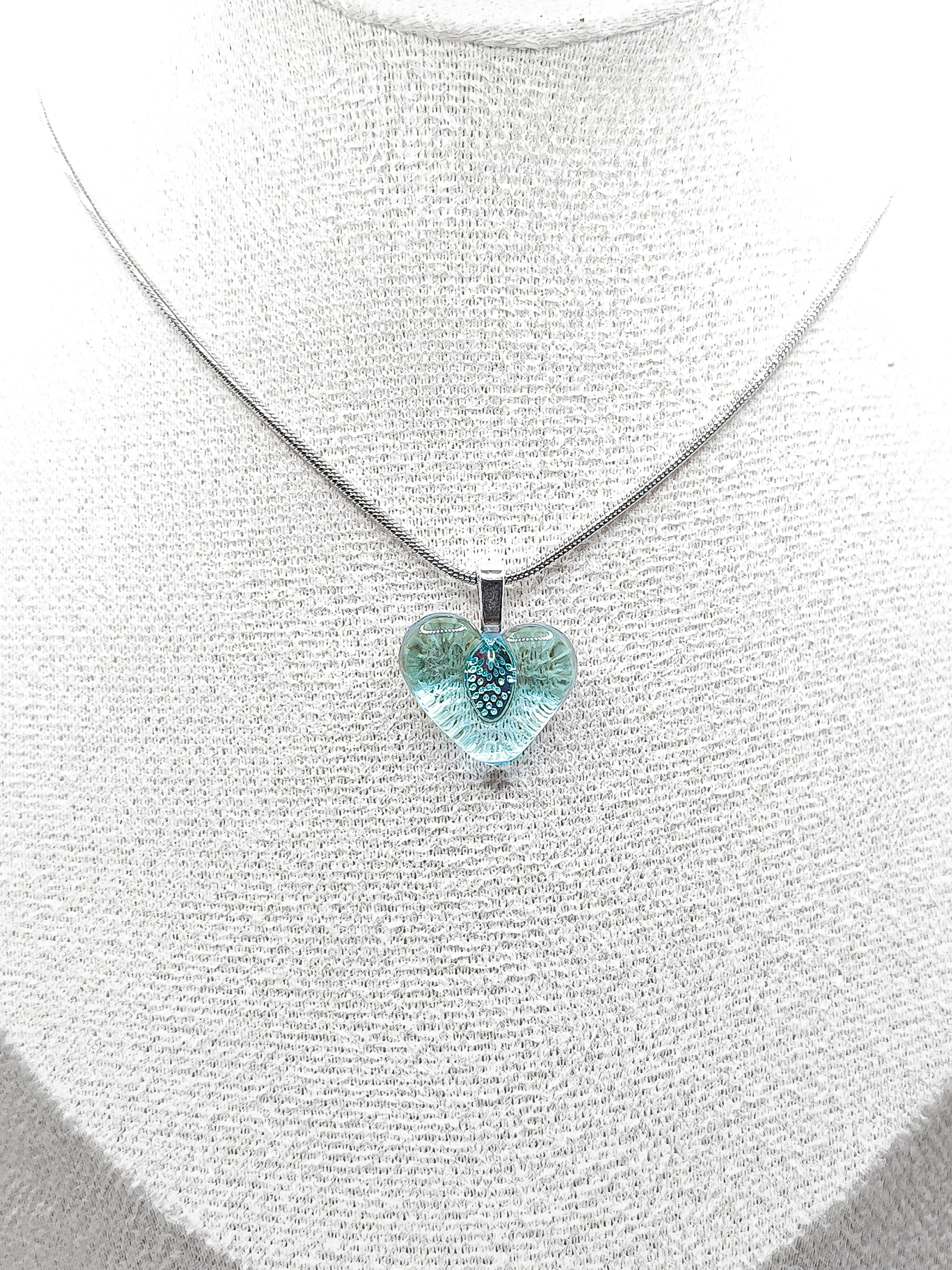 El Collar Corazon Color Azul Corralejo de Evergreen ofrece un diseño moderno y sofisticado, con una pieza central Corazón de vidrio reciclado, trabajada de forma artesanal y montada en plata .925, ideal para quienes buscan elegancia con propósito.