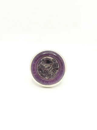 El Anillo Eternal Color Lila de Evergreen ofrece un diseño moderno y sofisticado, con una pieza central Circular Premium de vidrio reciclado, trabajada de forma artesanal y montada en plata .925, ideal para quienes buscan elegancia con propósito.