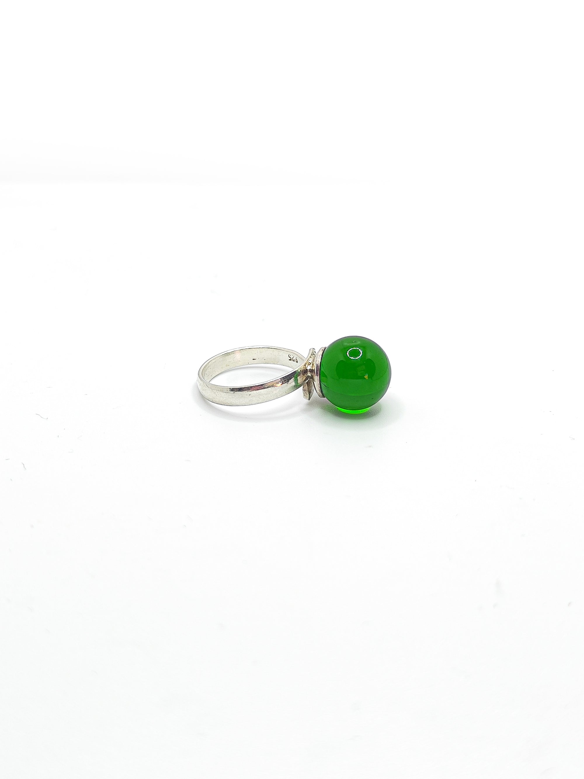 El Anillo Sphere Color Verde Heinecken de Evergreen ofrece un diseño moderno y sofisticado, con una pieza central Esfera de vidrio reciclado, trabajada de forma artesanal y montada en plata .925, ideal para quienes buscan elegancia con propósito.