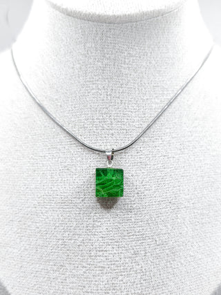 El Collar Vitrae Color Verde Heinecken de Evergreen ofrece un diseño moderno y sofisticado, con una pieza central Cubo de vidrio reciclado, trabajada de forma artesanal y montada en plata .925, ideal para quienes buscan elegancia con propósito.