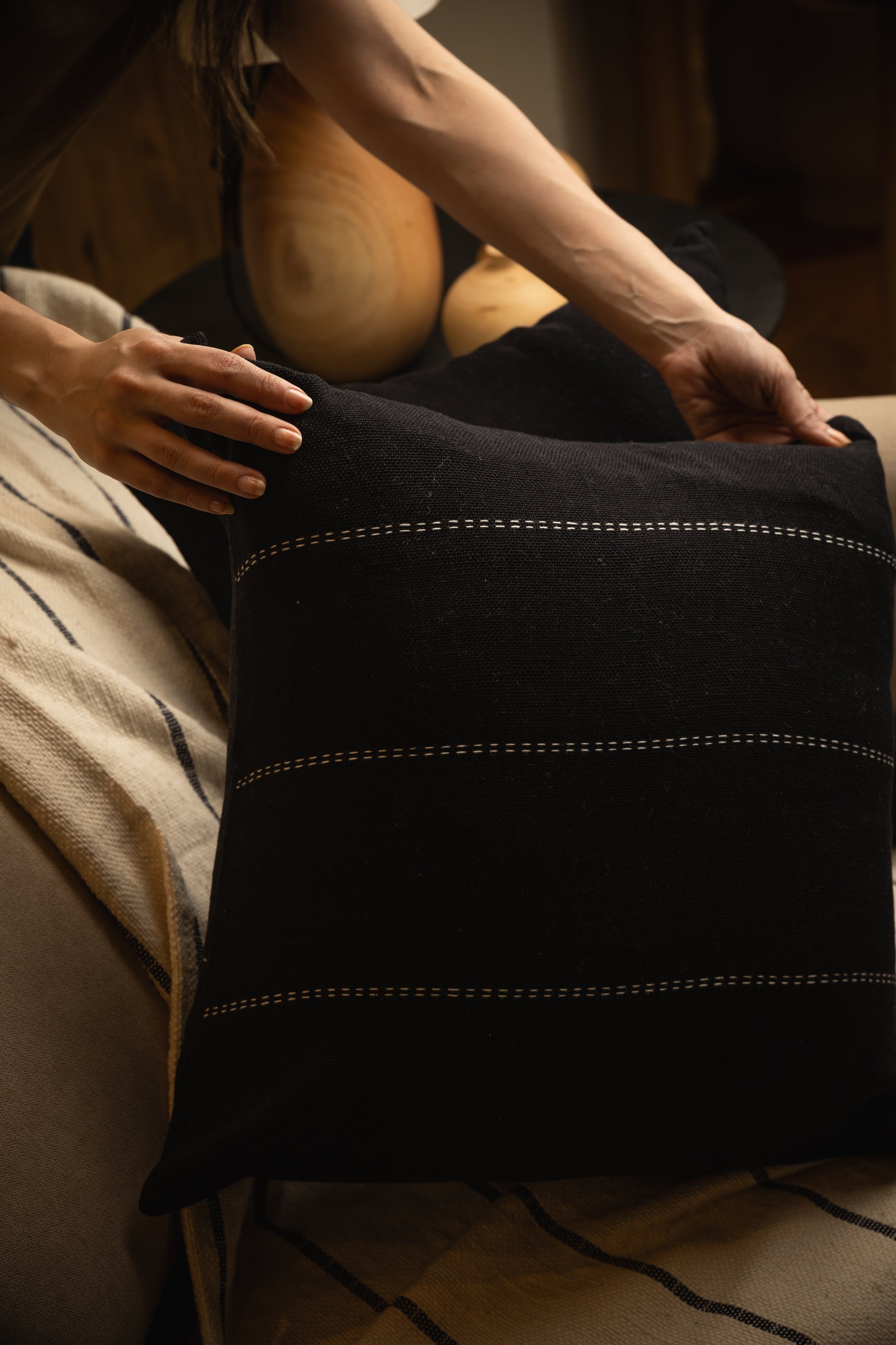 Textil artesanal paraguayo de Ao Po'i hecho en telar rústico con puntos bordados.