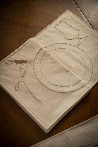 INDIVIDUALES DE ALGODÓN BORDADOS A MANO - BEIGE (SET DE 4)