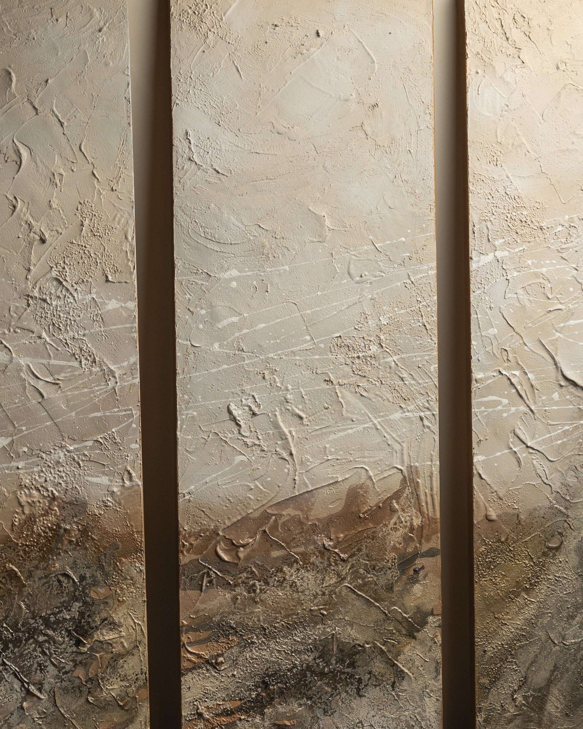 Technique: mixed oil-water, acrylics, gold leaf and various textures.
