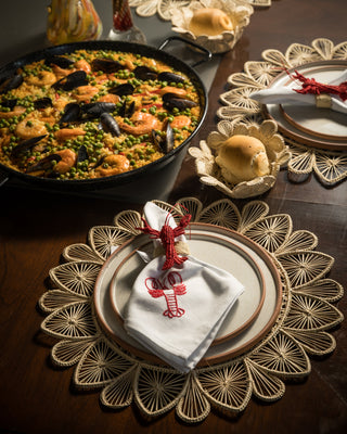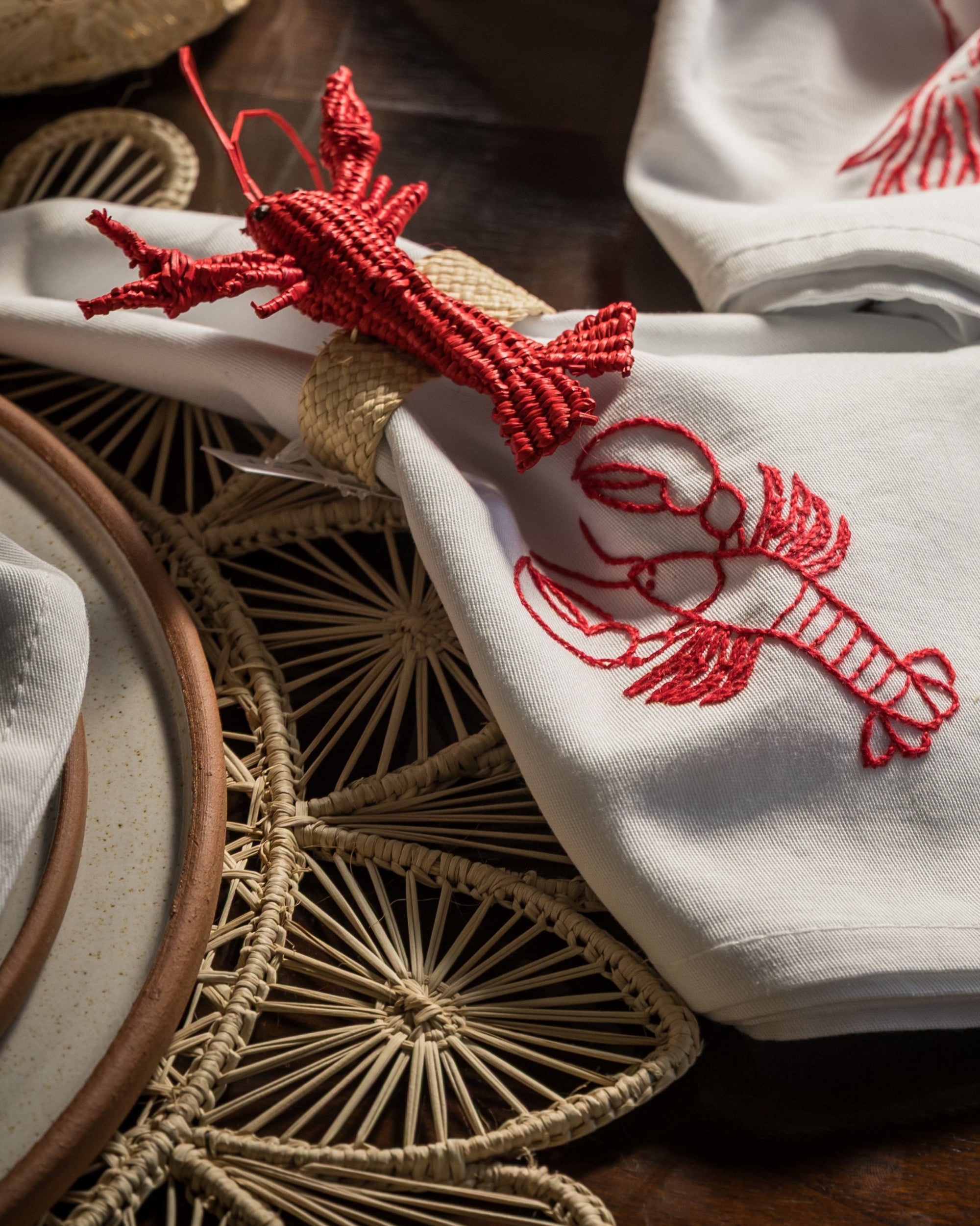 Terracotta tussor napkins measuring 45 x 45 cm.