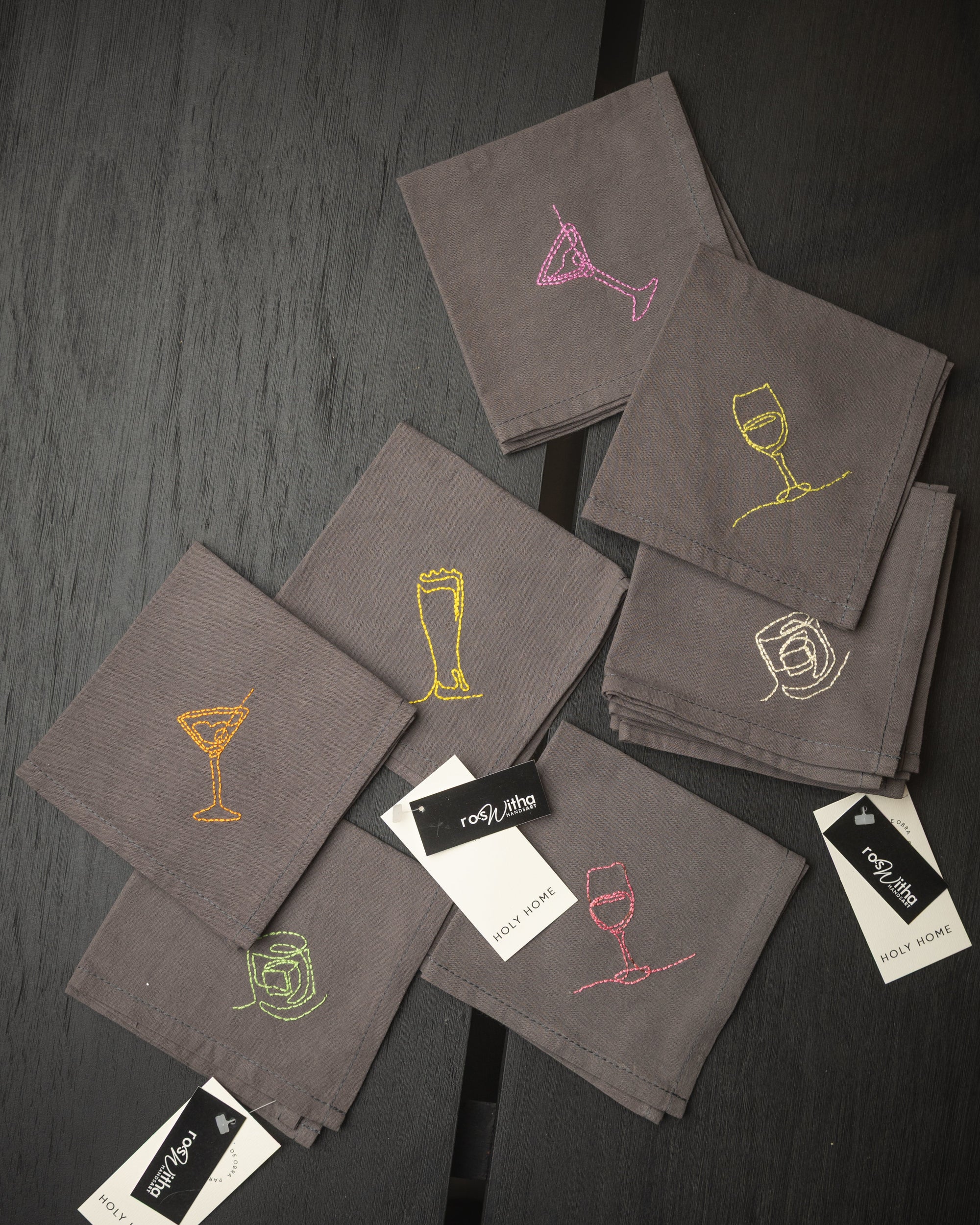 SERVILLETAS BORDADAS DE ALGODÓN TRAGOS 30 x 30 (PACK DE 4)