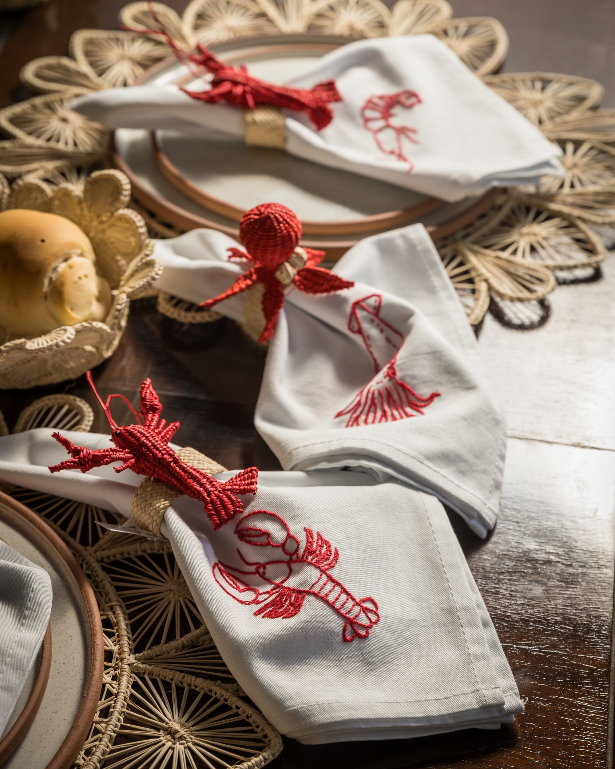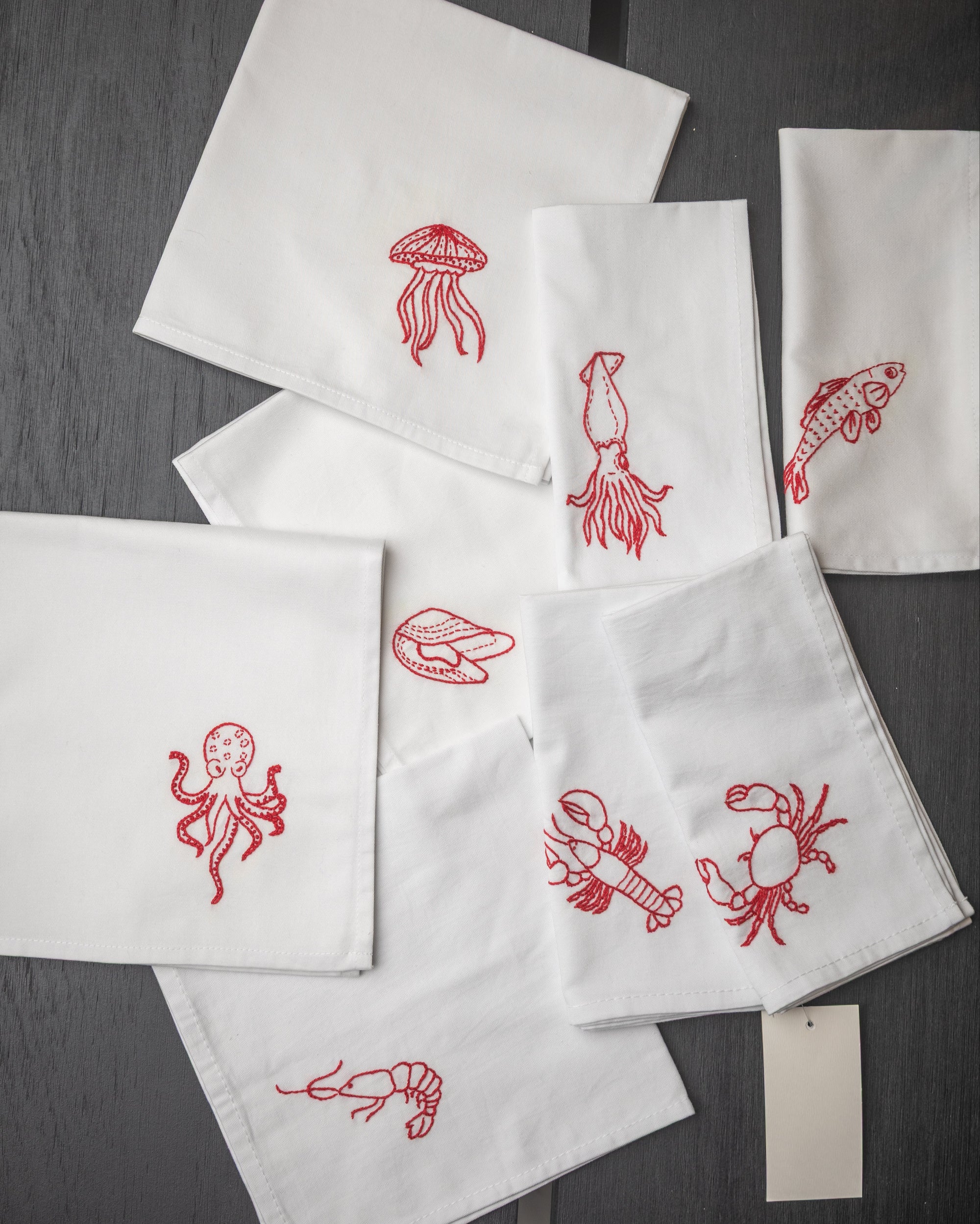 SERVILLETAS DE ALGODÓN BORDADAS - BICHOS MAR (PACK DE 4)
