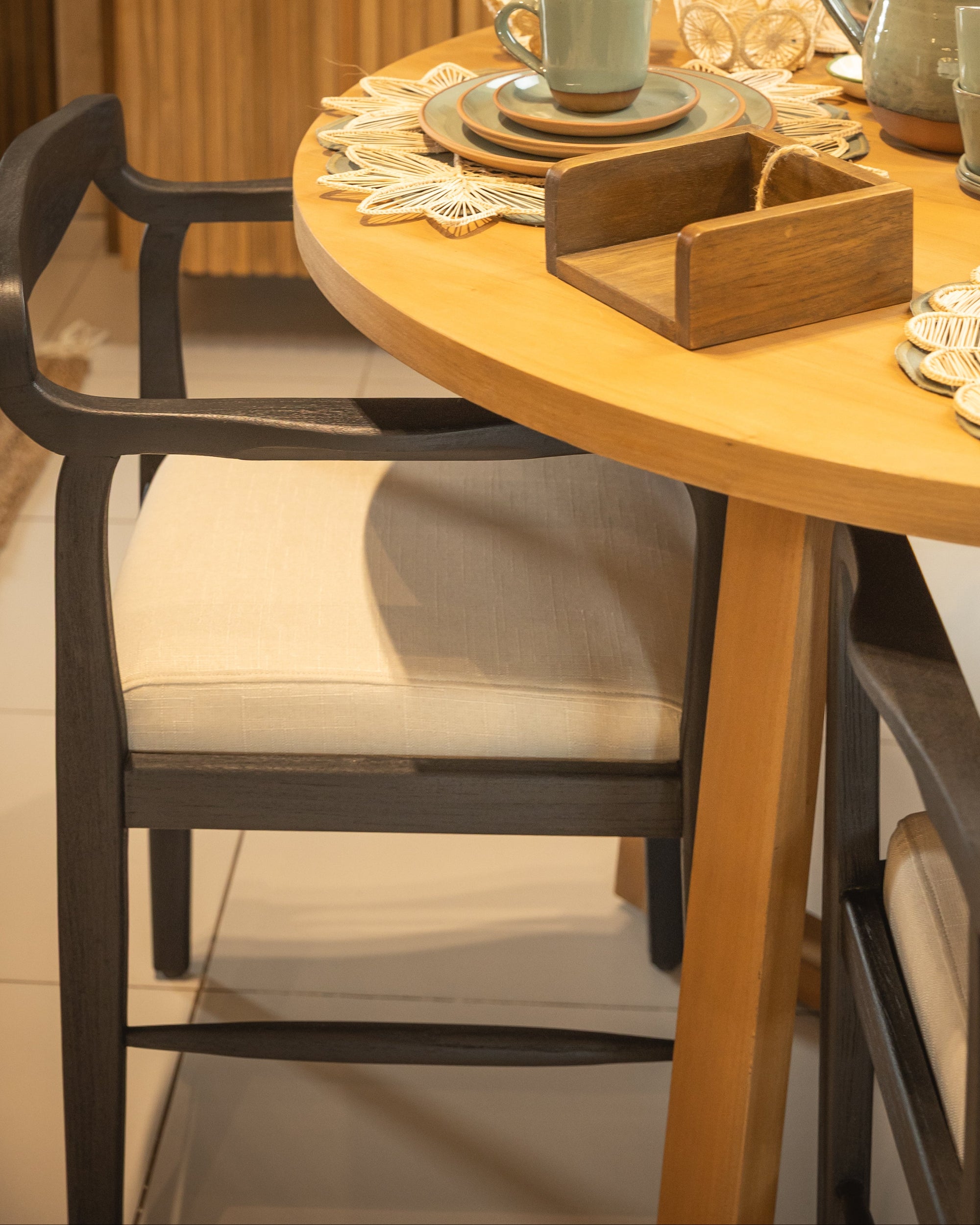 La Silla Honey es el equilibrio justo entre diseño contemporáneo y calidez artesanal. Fabricada en madera maciza y trabajada cuidadosamente a mano, ofrece resistencia y durabilidad sin perder ligereza visual. Su asiento tapizado aporta confort, mientras que las líneas suaves de su estructura envuelven con elegancia cualquier espacio.
