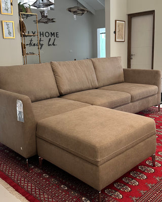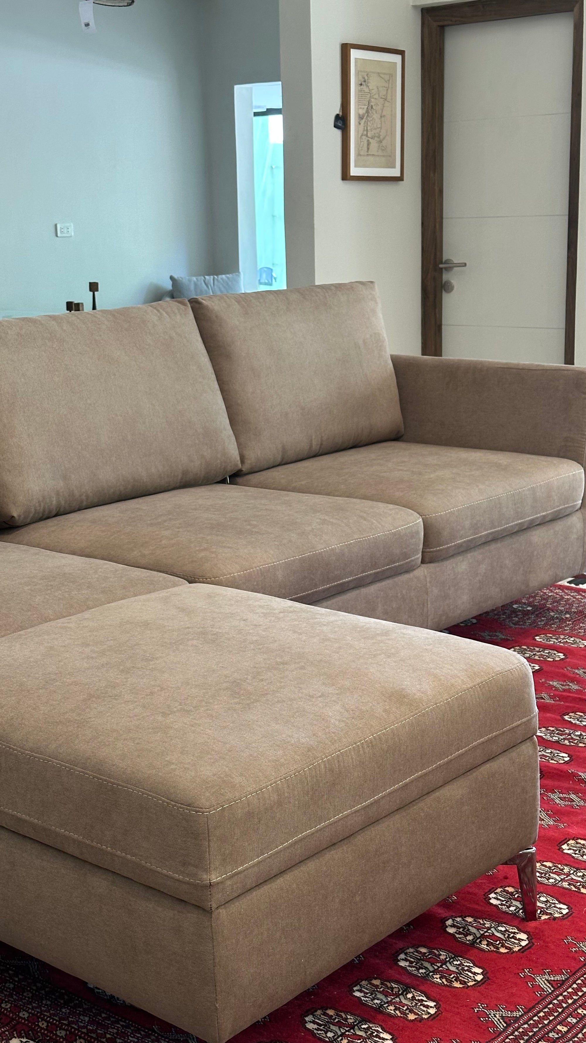 Puff movible y fijable en el módulo izquierdo o derecho, respaldos retráctiles.